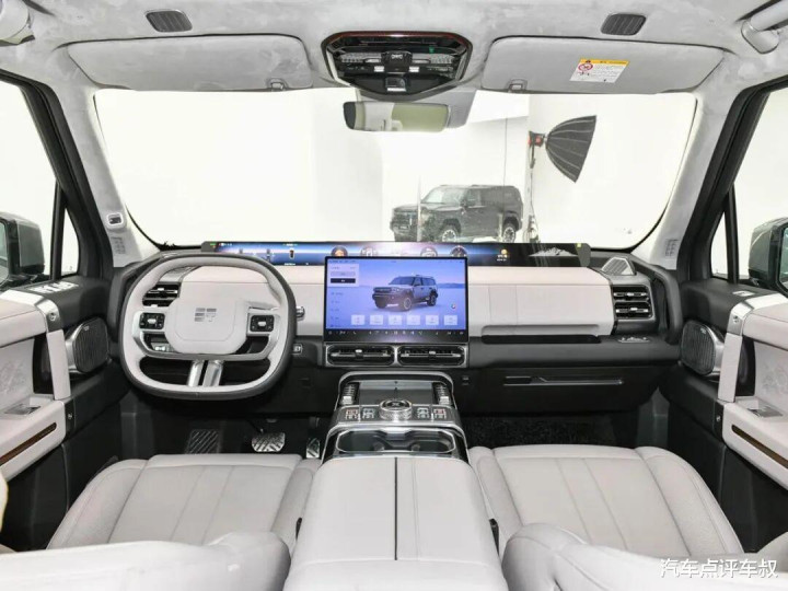 内饰方面,该车大面积采用了皮质包裹,力求营造出足够豪华的质感与氛围。厚重的中控台让人想起经典豪华硬派的风格,宽大的中央区域也在尽量接近全尺寸硬派SUV才有的厚重感与豪华感。而且,实体按键保留得较多,越野部分的控制毫无悬念地设置在了触手可及的位置。值得一提的是,该车还采用了近年才逐渐流行的怀挡设计,而传统换挡杆的位置则成了全地形系统和越野辅助功能的布置区域。座椅部分,该车有五座和六座两种布局,能针对不同需求的人群进行有针对性的照顾和选择。